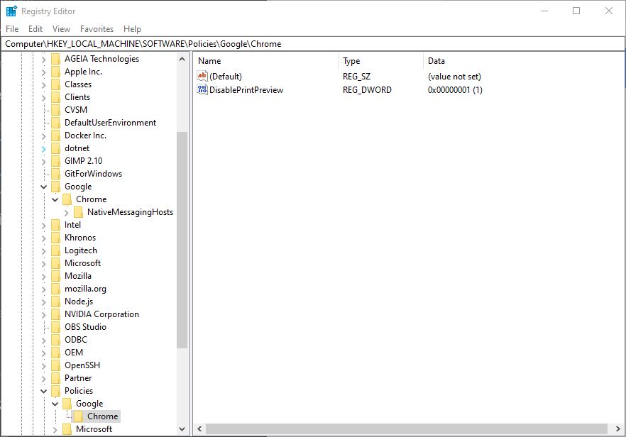 DisablePrintPreview. This sounded really familiar, had I edited this before? Digging through my browser history, I found this page about disabling print preview: pupuweb.com/solved-fix-print-preview-chrome/ -
